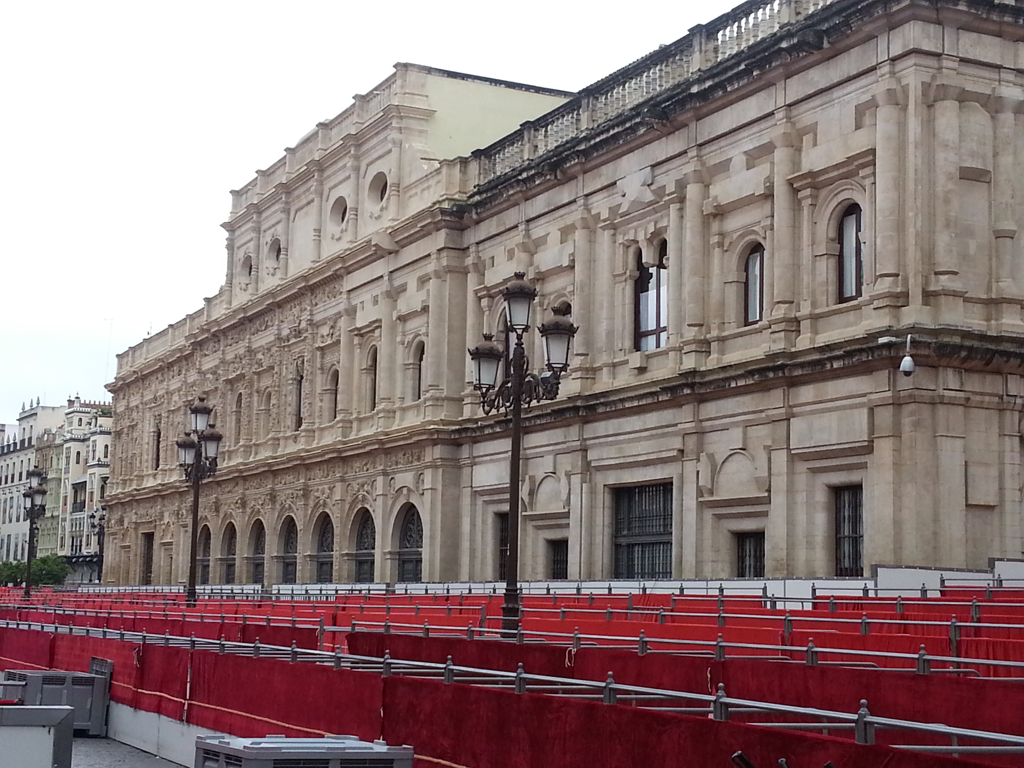 The biggest, and most impressive, is in Seville where the centre is closed to traffic for the week. Last Saturday the infrastructure was being set up for the parade. I’ve since discovered that seats are pretty much impossible to come by as they are handed