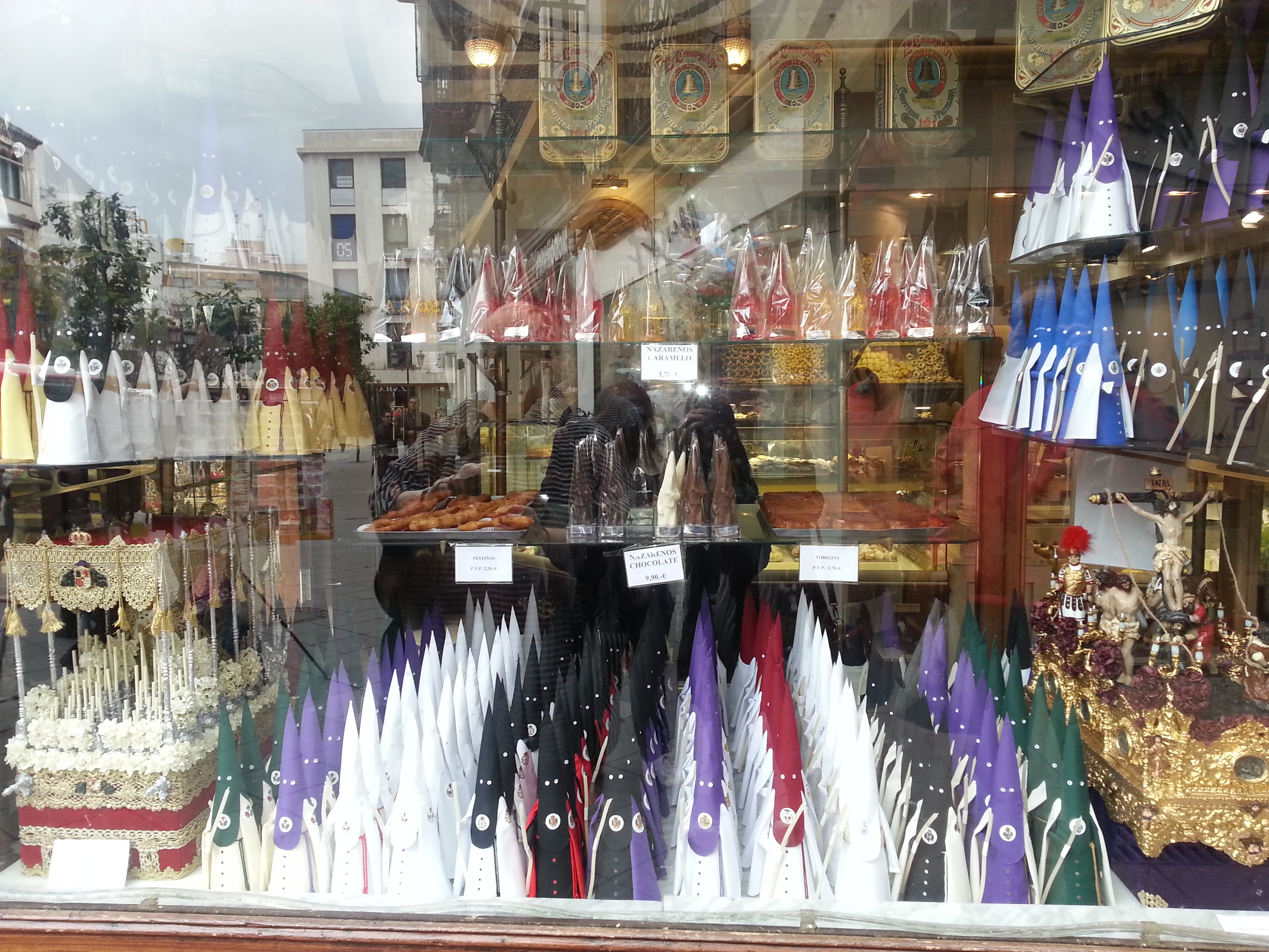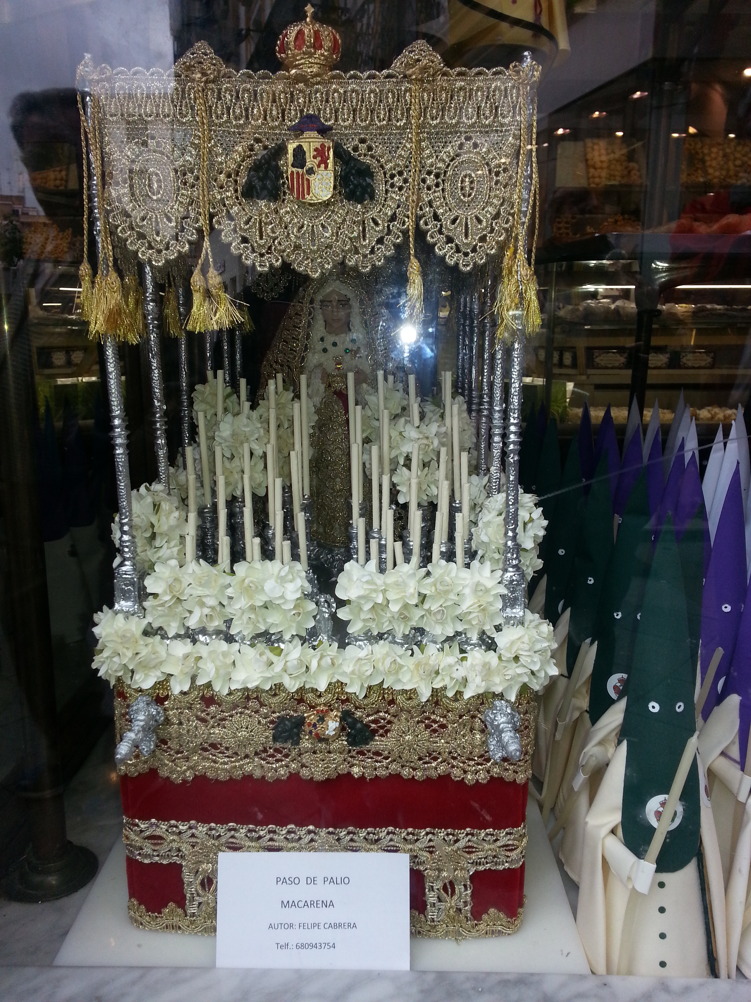 Semana Santa is so much a part of Seville than even the shop windows are decorated in theme and the big department store Corte Inglese had an exhibit of school childrens pasos creations.