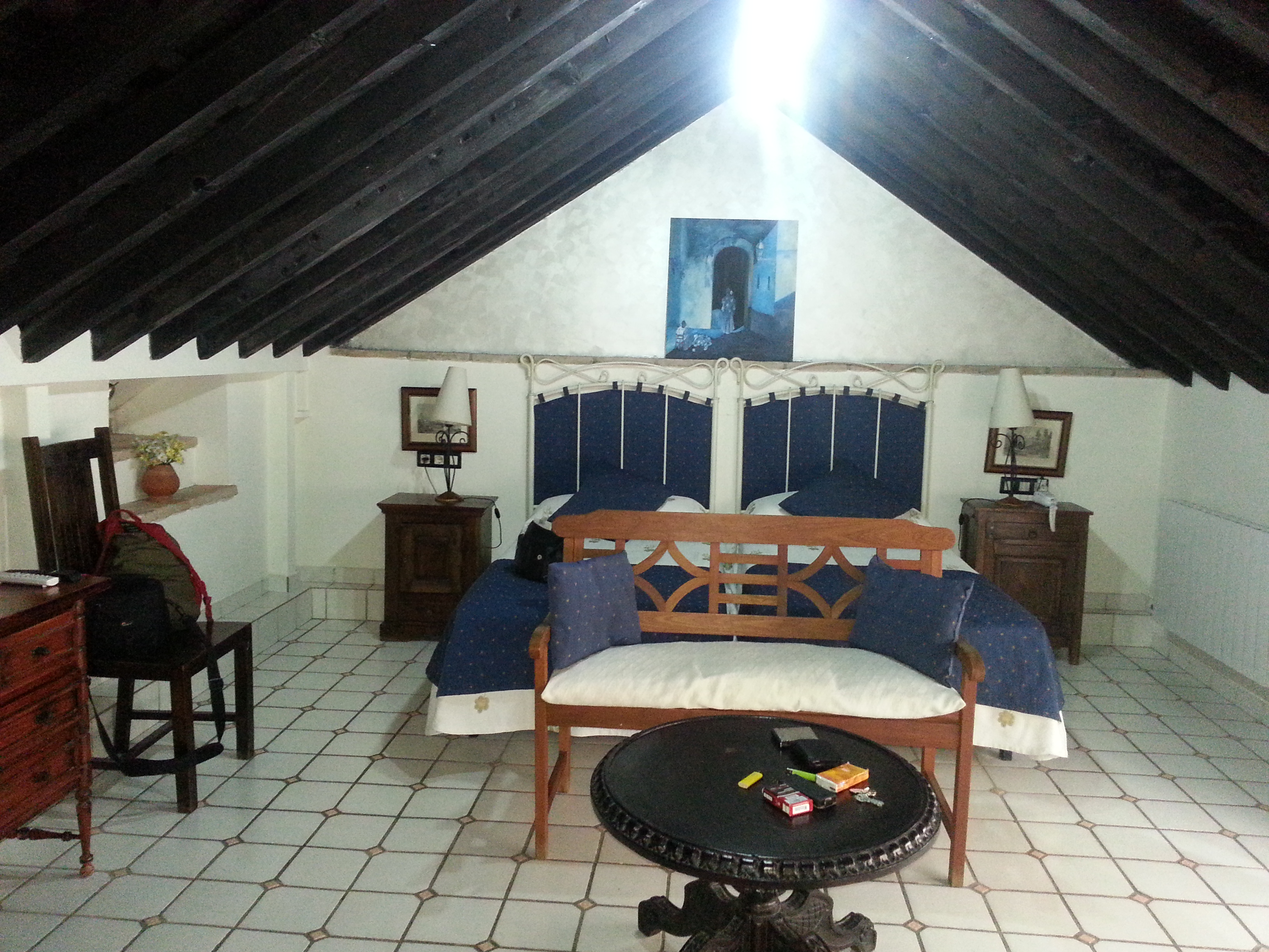 By the time I got back to my hotel at around 11pm, my poor little footsies were pretty tired. It was a most welcome relief to slip off my shoes, wiggle my toes and settle back with a glass of bubbly in hand before dragging myself into the shower. The hotel was a converted 16 Century mini palace located right on the Darro. My room, which I’d booked at the last moment, was in what was obviously a converted attic space. I slept like a log!