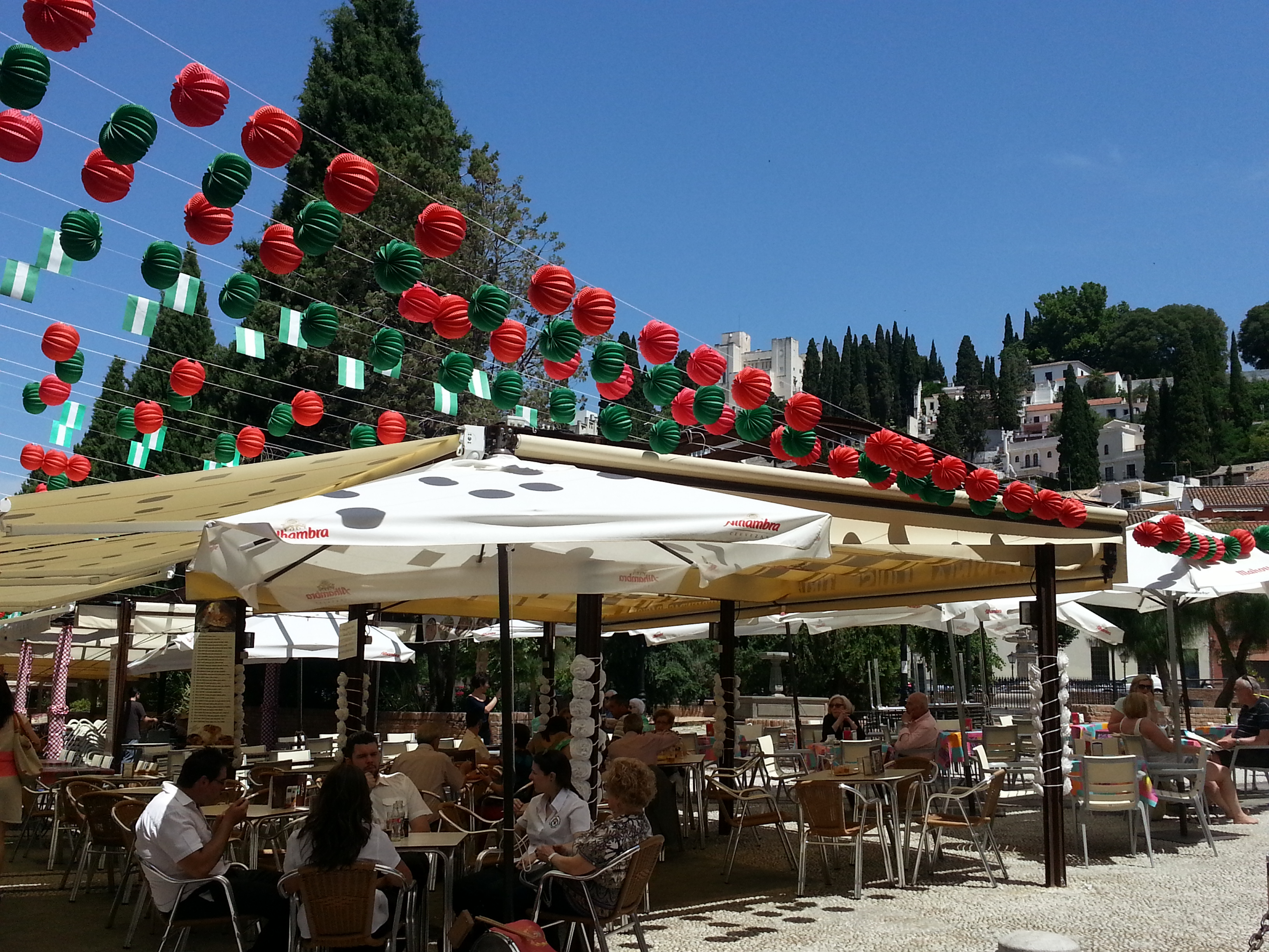 There is a little bus that you can take up and down, and it’s very cheap (E1.20). We took the bus last time as we were pressed for time. This time my explorations were all on foot, both up and down, round and through the various nooks and crannies, including a visit to the mosque whose gardens are open to the public. The view from here of the Alhambra is pretty spectacular but without the crowds at the Mirador S. Nicholas which is right next door. I also took the big camera this time, so have better shots, but these here are straight from my phone.